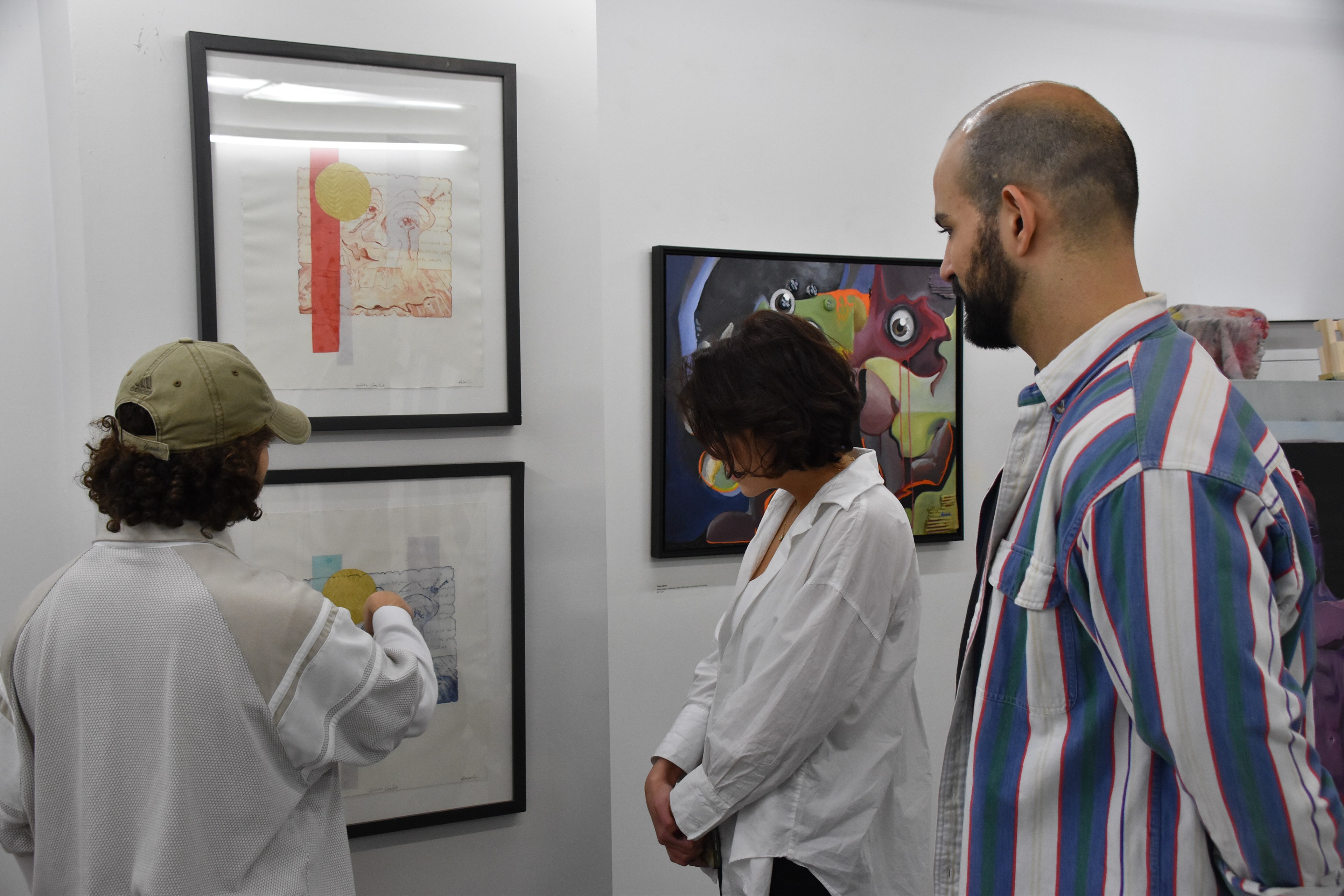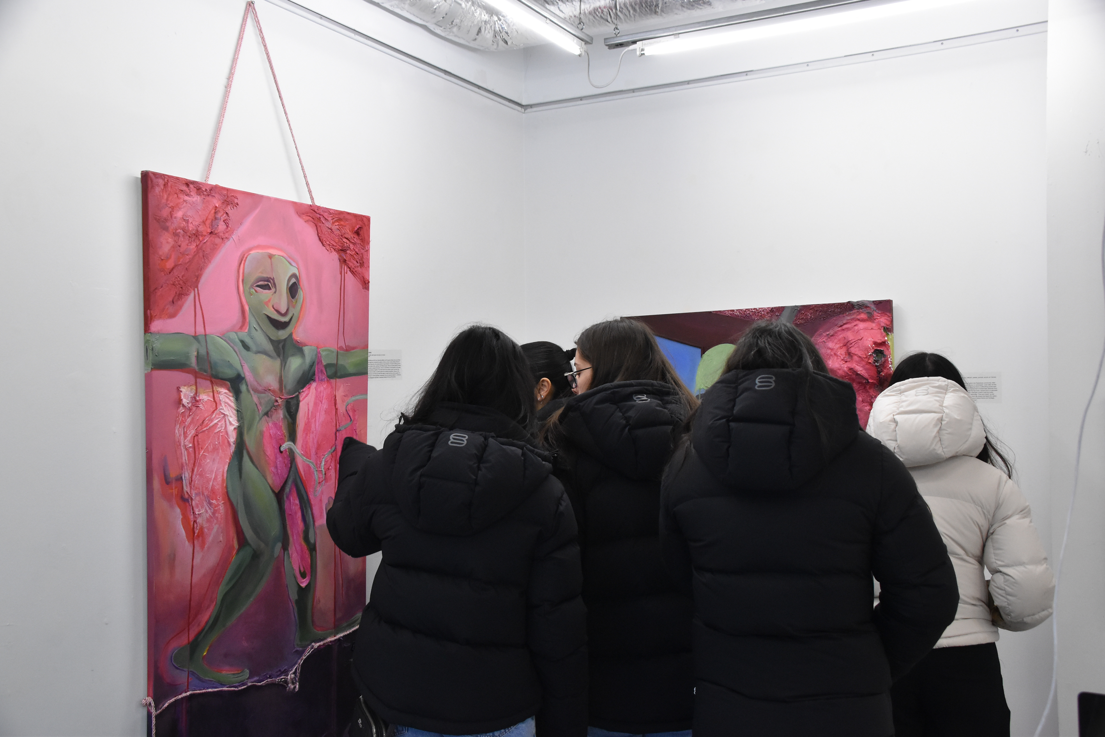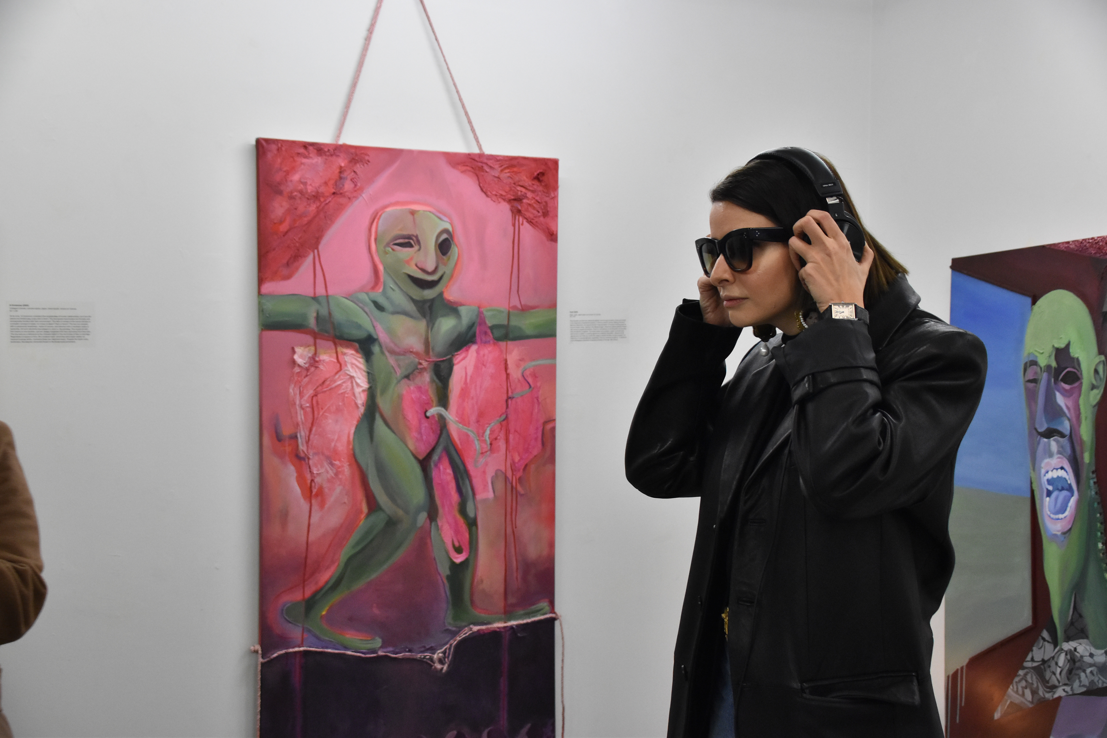 The exhibition showcased multilayered representations of the human body. Characters, both physically and conceptually, transcend humanist proportions. The body is stretched, shattered, stripped, and skinned—hollowed to become one with its surroundings. Androgynous, quasi-human, and in states of limbo, the foreground becomes background, inner and outer are interchangeable. Language becomes leaky, skin porous, and categories ambiguous. The title itself, BeYonDerM, assumes various intonations: Be, Beyond, Yonder, Dermis. The blending of words and the dissolution of their boundaries create a new term, unapologetically non-rational.